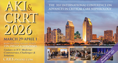 2026 Dates – March 29-April 1! … 31st Annual International Conference: AKI & CRRT 2026. Manchester Grand Hyatt – San Diego, California.